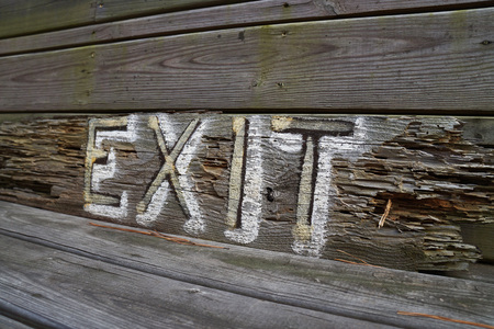 Weathered and distressed wood painted exit sign