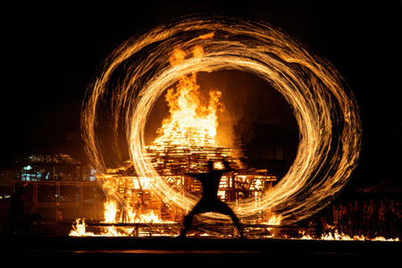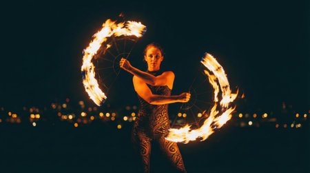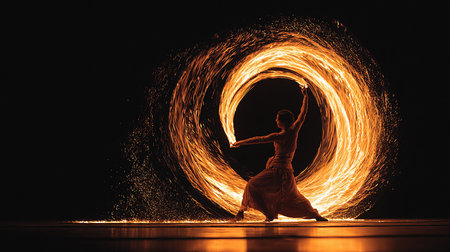 Fire dance performance truly showcases extraordinary skill, creativity, and artistry in the dark. Generative AI