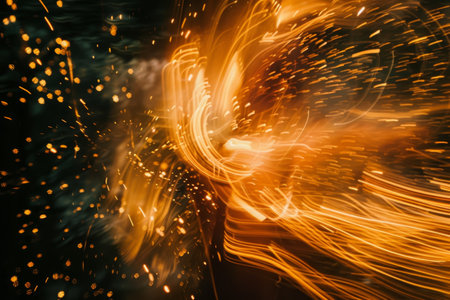 Dynamic sparks of fire illuminate a black background in vibrant display