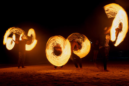 Amazing Fire Show at night on Khoa chang Island, Thailand