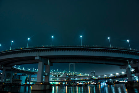 Night View of Shibaura Loop Bridge and Rainbow Bridge, Kaigan, Minato City, Tokyo, Japan