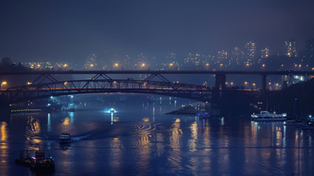 Generative AI : Bridge over the Dnieper near the Ukrainian city of Cherkasyat night