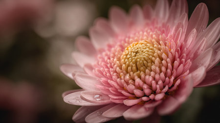 Delicate Pink Chrysanthemum Bloom with Water Droplets on Petals