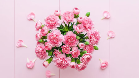 Macro shot of vibrant pink carnations (Dianthus caryophyllus) with water drops.