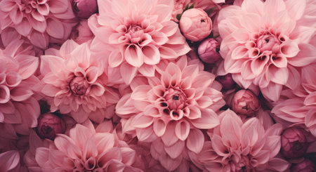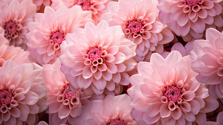 Close-up of beautiful pink dahlia flowers in full bloom. The soft light and delicate petals create a romantic and serene atmosphere perfect for backgrounds.