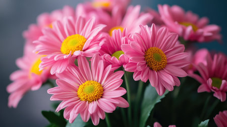 Elegant bouquet of pink flowers with bold yellow centers, capturing the vivid and fresh essence of springtime blooms.