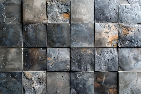 Explore a detailed image of dark slate tiles arranged in a modern geometric pattern, perfect for backgrounds or decorative projects showcasing elegance and durability.
