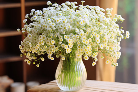 White Flower bouquet in a Vase on wooden table