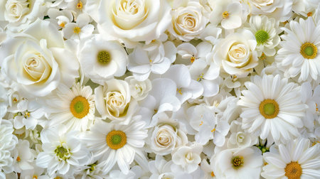 A stunning and captivating arrangement of bright white flowers that creates a peaceful and elegant backdrop