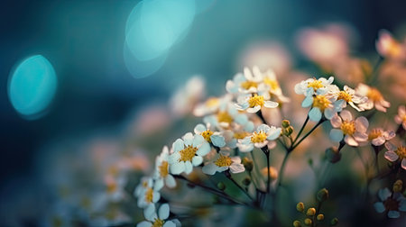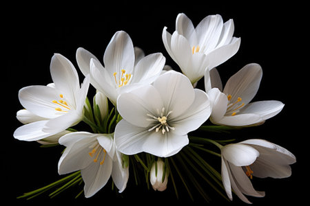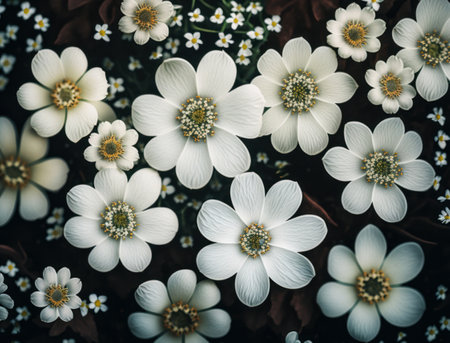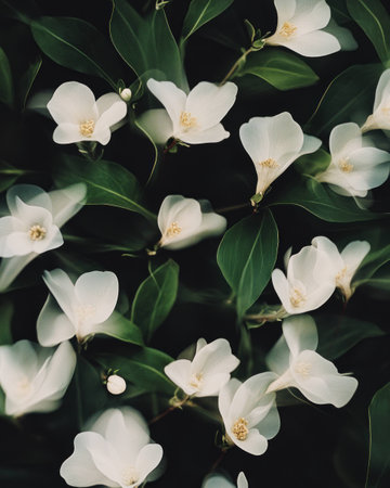 Beautiful close up of delicate white flowers against a dark background, emphasizing the elegance of nature with a serene and peaceful vibe