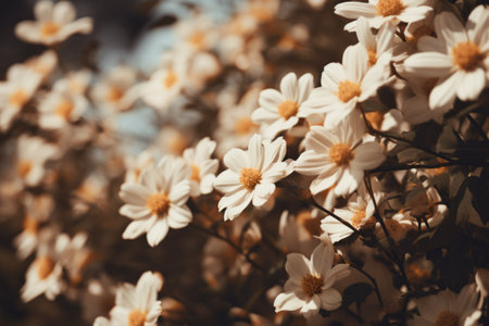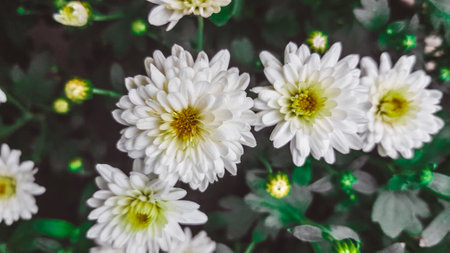 cluster of white chrysanthemum flowers, Vintage Style.
