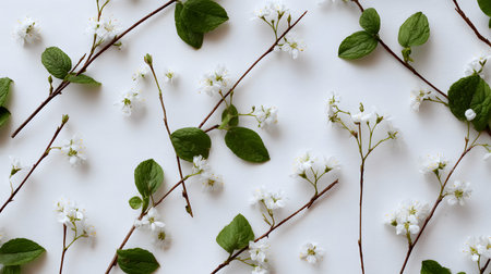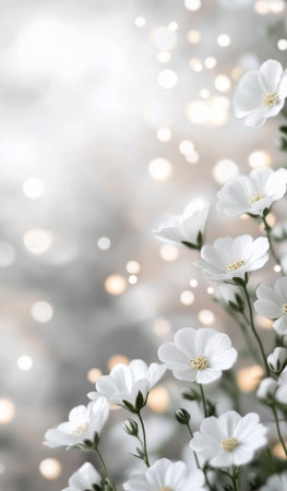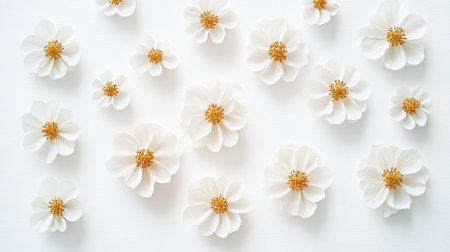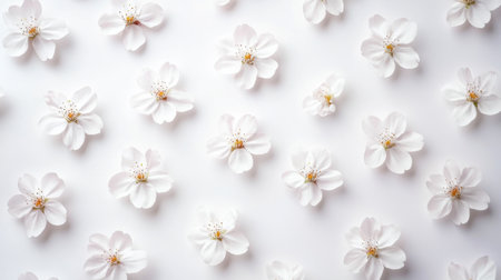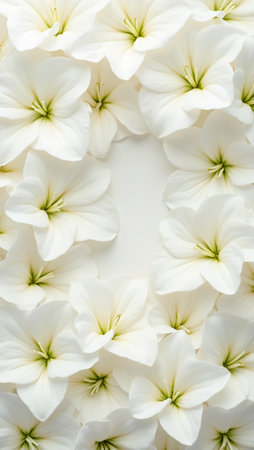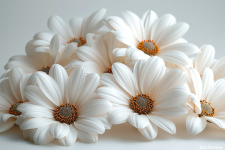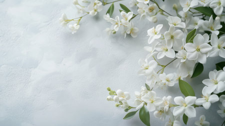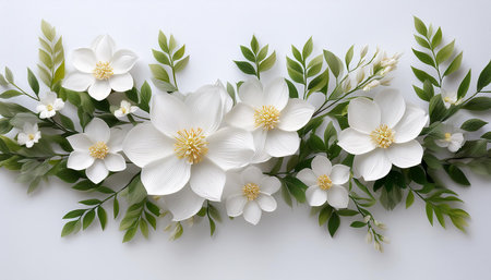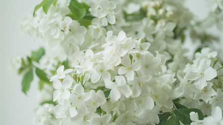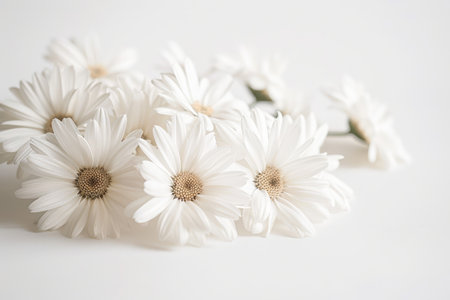 A stunning arrangement of delicate white flowers set against a soft white background, perfect for adding a touch of elegance and tranquility to any creative project.