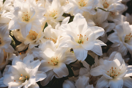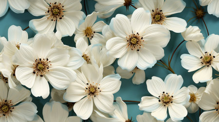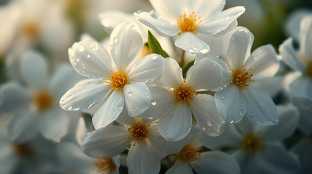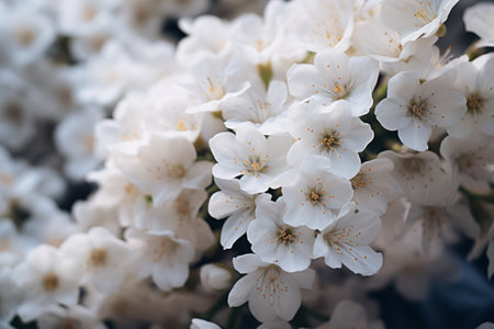 This image showcases a close-up of vibrant white flowers in full bloom, set against a soft, blurred background. The composition emphasizes the flowers' intricate details and textures. The overall aesthetic is one of natural beauty and freshness, perfect for various commercial applications like advertising and editorial content.