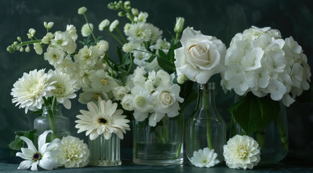 A stunning and beautiful display of white flowers, ideal for weddings, joyous celebrations, and serene decor