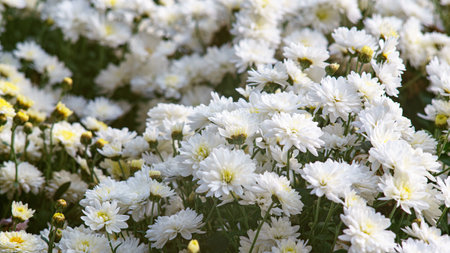 Chrysanthemum, formerly Dendranthemum white blooming'white fields of flowers to welcome winter