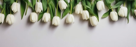 Bouquet of white tulips on a light background. Place for text. Generative AI