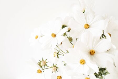 White daisies on a white background with copy space for text