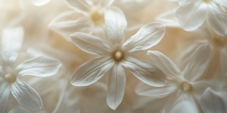 A delicate, macro view of pale white jasmine petals, with soft, smooth textures and a clean, fresh feel, perfect for a minimalist background.