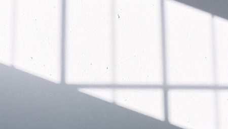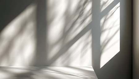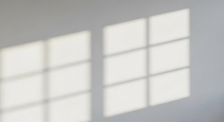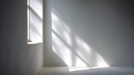 Blurred natural light windows, shadow overlay on wall, abstract background for product presentation