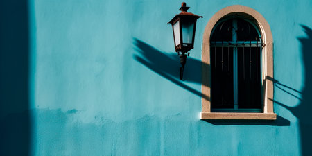 Street lamp on a blue wall with shadow on the wall, Portugal