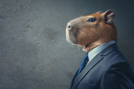Capybara in a Business Suit, Animal Businessman, Funny Boss, Capybara Headed Man in a Formal Business Suit, Generative AI Illustration