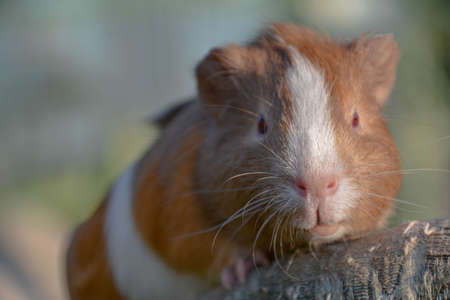 Beautiful guinea pig staring at camera and posing. Domestic guinea pig