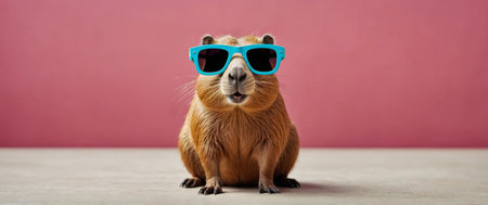 AI Generated. Humor Cute funny capybara in sunglasses on bright background with copy space, funny animal concept
