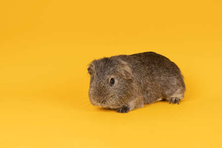 Portrait of a Little gray adult guinea pig in a yellow background