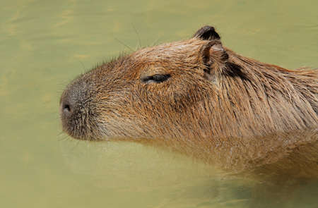Portrait of a Capybara (Hydrochoerus hydrochaeris) in water, South America