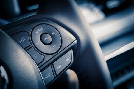 Shot of the cruise control button on a steering wheel.