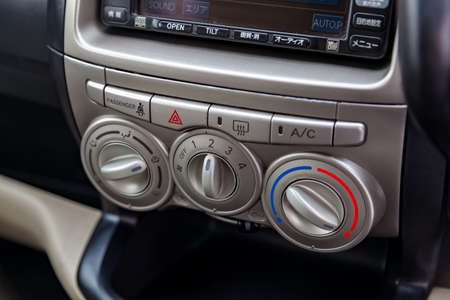 Control panel car air conditioner dashboard. Modern car interior conditioning buttons inside a car close up view.