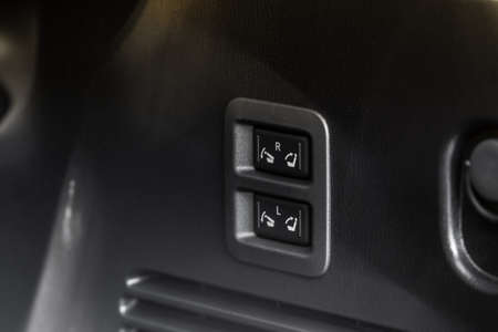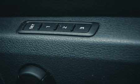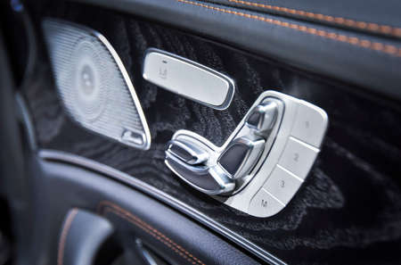 Modern car interior details. Door handle and electronic memory for the chairs.