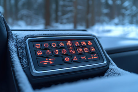 Heated seats buttons inside car. Seat heating buttons control panel in luxury car close-up view photo