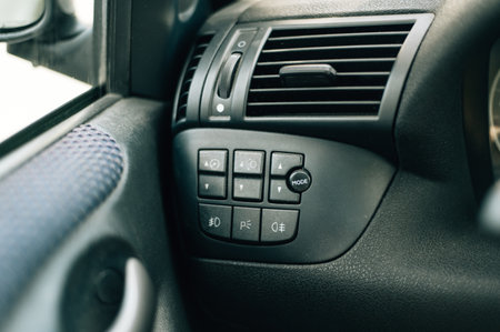 Window button control electric for vehicle car closeup, transport concept