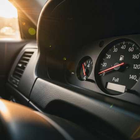 Close up image of a car's dashboard indicating a very high fuel consumption.