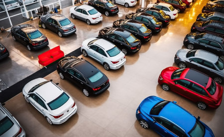 An Exquisite Automobile Presentation at Dealership. Top view. Generative AI