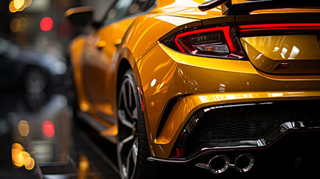 Zoom at sports car mirror and fender in Car show event with light bokeh at Bangkok, Thailand.