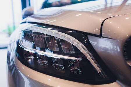 Headlight of a modern luxury car, auto detail,car care concept ,daytime running light