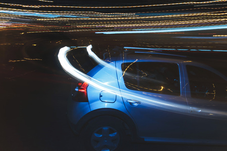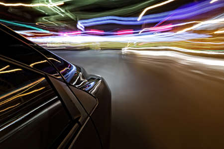 The car moves at great speed at the night