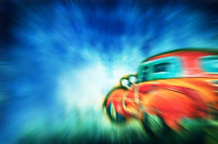 car on the road with motion blur background.vintage color.