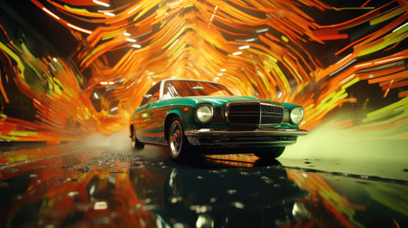 Sleek Car in Motion with Vibrant Light Trails Capturing the Essence of Speed and Modern Technology Against a Dark Background for Stock Photography