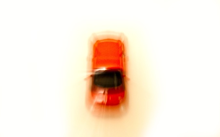 blury Red toy car on white isolated background