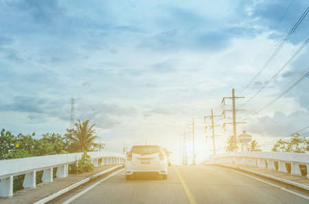 Car driving on highway at sunset, Cabo da Roca, Portugal