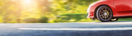 Abstract green background motion blur, sports car speeding, accelerating on a country highway