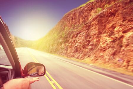Summer Highway Drive. Mountain Road Driving at Sunset.