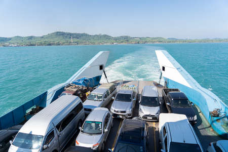 TRAT, THAILAND April 2 : Cars loaded on ferry boat and heading to Koh Chang island on April 2, 2015 in Koh Chang, Trat, Thailand.