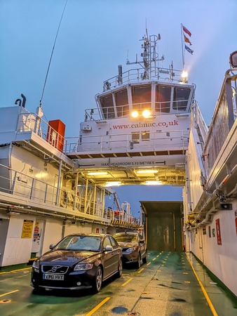 Sconser, Isle of Skye / Scotland - October 23 2018 : Cars driving on the ferry to Raasay