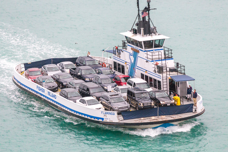 MIAMI, USA - DECEMBER 11, 2016 : Ferry transporting cars from Fisher Island