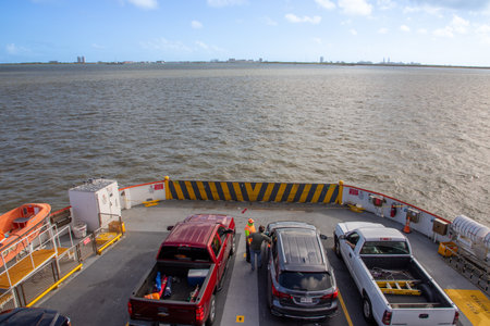 Bolivar, USA - October 28, 2023: ferry from port Bolivar to Galveston. The ferry is free of charge and operates every 20 minutes.