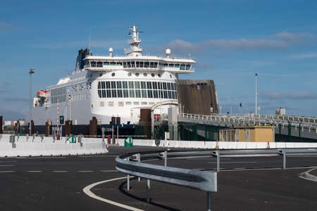 Calais, France - June 23, 2017; The ship Dover Seaways waiting in Calais France to cross the channel, an important way to reach Dover, the UK from the mainland.